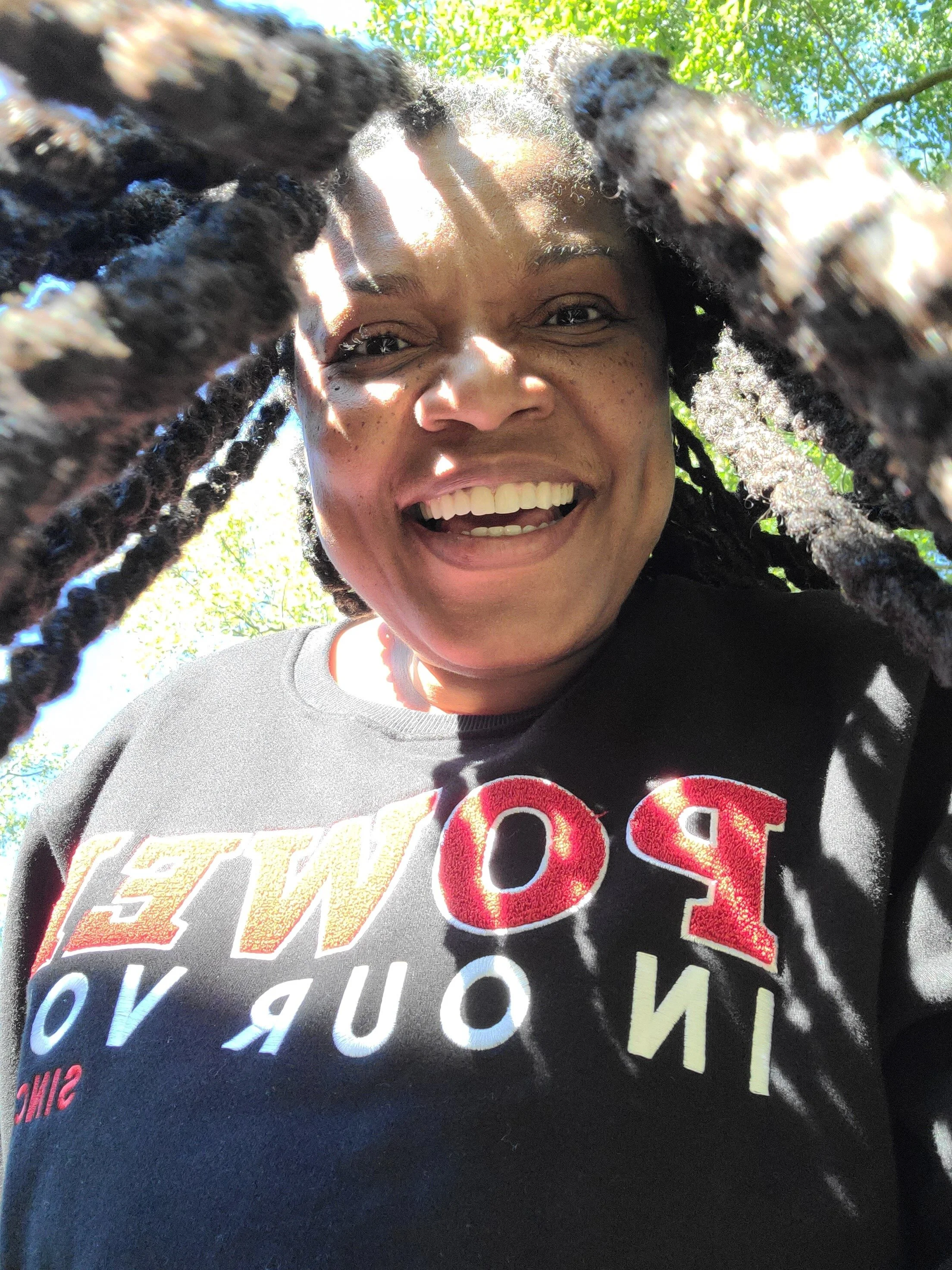 I proudly wore my 'Power In Our Vote Since 1913' sweatshirt to represent my sorority, Delta Sigma Theta Sorority, Inc. It's an honor for me to add my voice to the collective power of our sisterhood.
